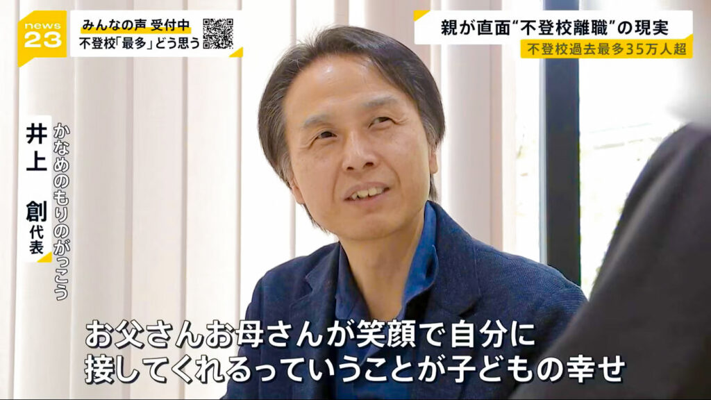 ニュースタイトルは「不登校 “過去最多35万人” "親の4人に1人が“不登校離職・休職” に…「答えがない」 親にも子にも求められる “頼れる場所”」です。